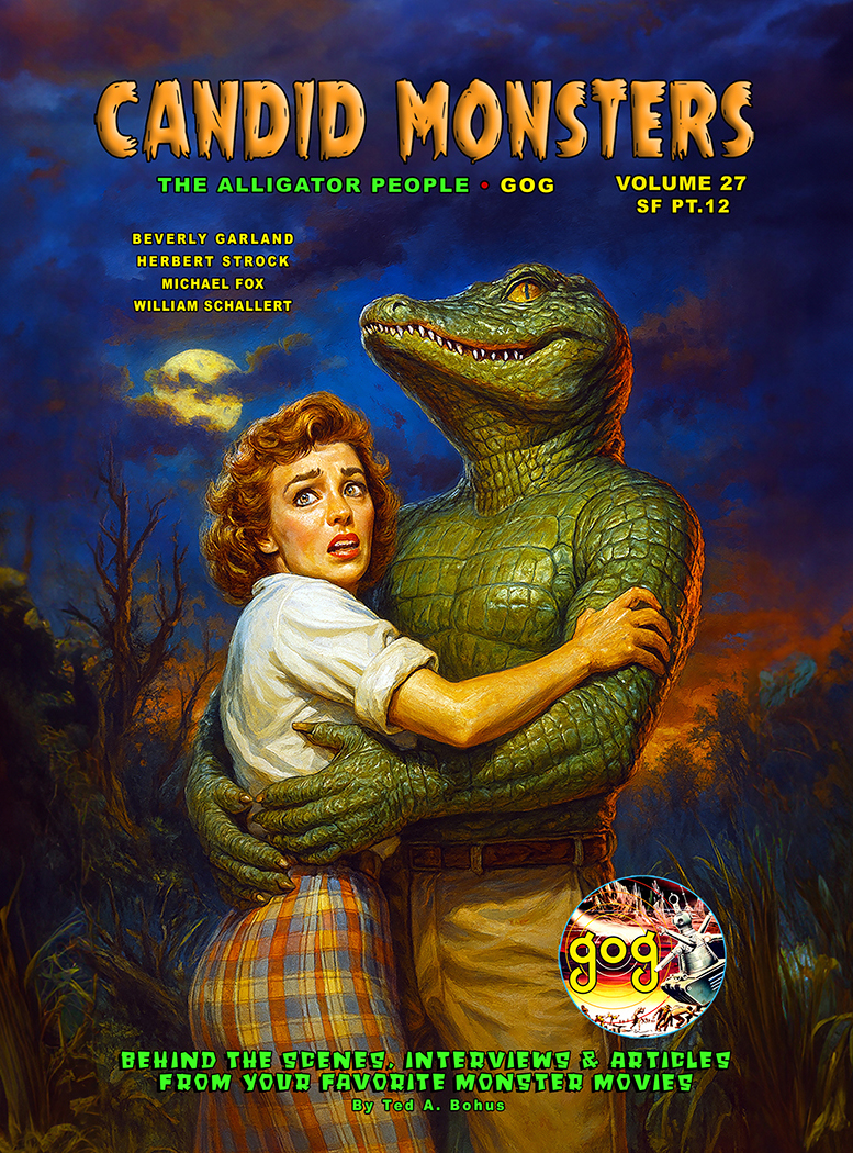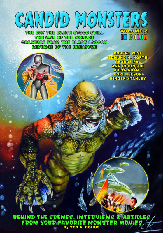 Volume 2 Contents: Volume 2 of CANDID MONSTERS in fantastic COLOR! In this Volume you’ll find interviews with Robert (Day the Earth Stood Still) Wise, Edmond H. North (Day the Earth Stood Still screenwriter) and George (War Of the Worlds) Pal. Also actors Ann (War Of the Worlds) Robinson, and Creature From the Black Lagoon/Revenge Of the Creature stars Julie Adams, Ricou Browning, Lori Nelson and Julie Adams underwater stand-in, Ginger Stanley. Also: Feature article on Bob Burns finding the original Time Machine!